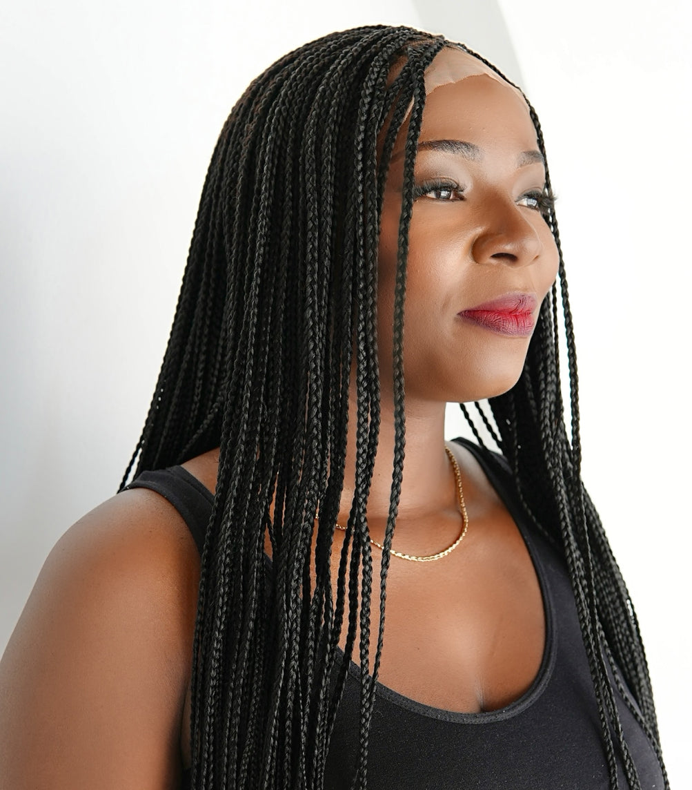 The Bone Straight 6x6 Braided Wig is the ultimate in sleek, polished style. Hand-braided to perfection, this wig features a smooth, straight design that exudes sophistication. The 6x6 high-definition lace closure provides a natural, undetectable hairline, ensuring a flawless blend with your skin. Lightweight and comfortable, the Bone Straight Braided Wig is designed for easy styling and all-day wear, making it the perfect choice for a refined, luxurious look that never goes out of style.