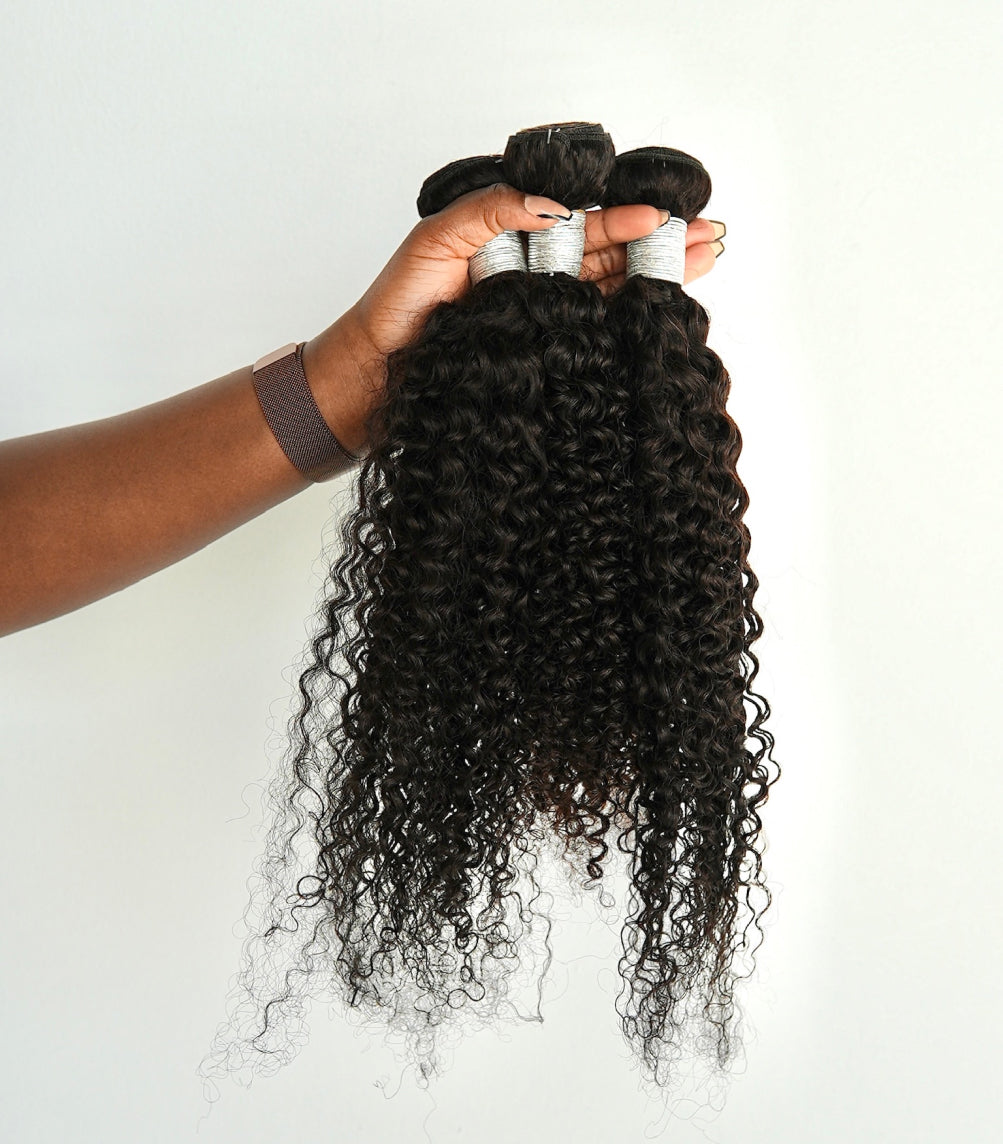 Curly Hair Bundles offer voluminous, 100% human hair with soft, defined curls that can be dyed, curled, and washed for versatile styling. Designed for natural movement and bounce, these extensions provide a full, luxurious look while maintaining their shape and texture after styling or care.