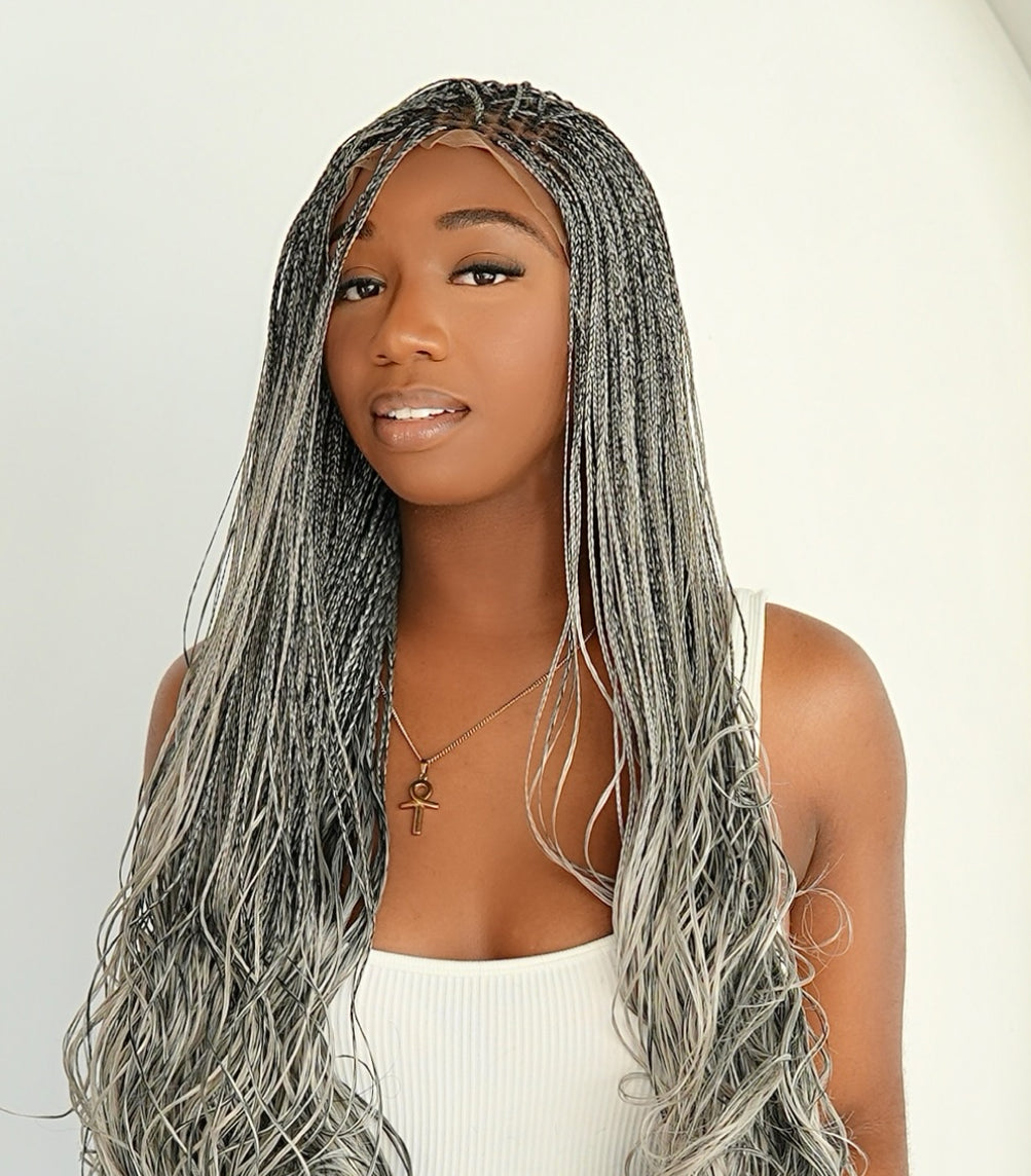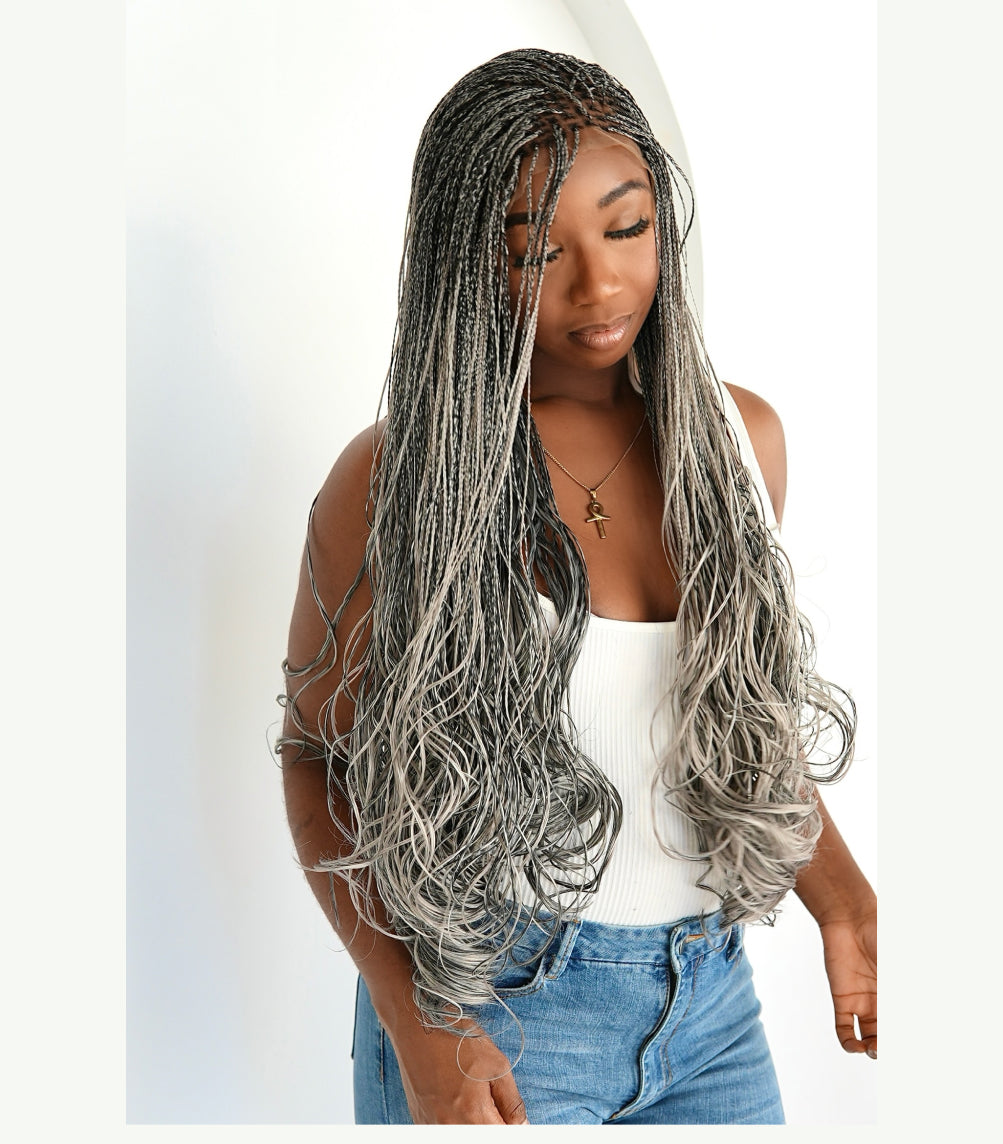 The Curly Wild Numbers 13x6 Braided Wig is a bold, eye-catching style that features vibrant multi-colored braids paired with voluminous curls. Hand-braided with precision, this wig offers a striking combination of texture and color. The 13x6 high-definition lace closure ensures a natural, seamless hairline, allowing for versatile styling options. Lightweight and comfortable, the Curly Wild Numbers wig is perfect for those looking to make a statement with a fun, colorful look that blends artistry with exceptional quality.