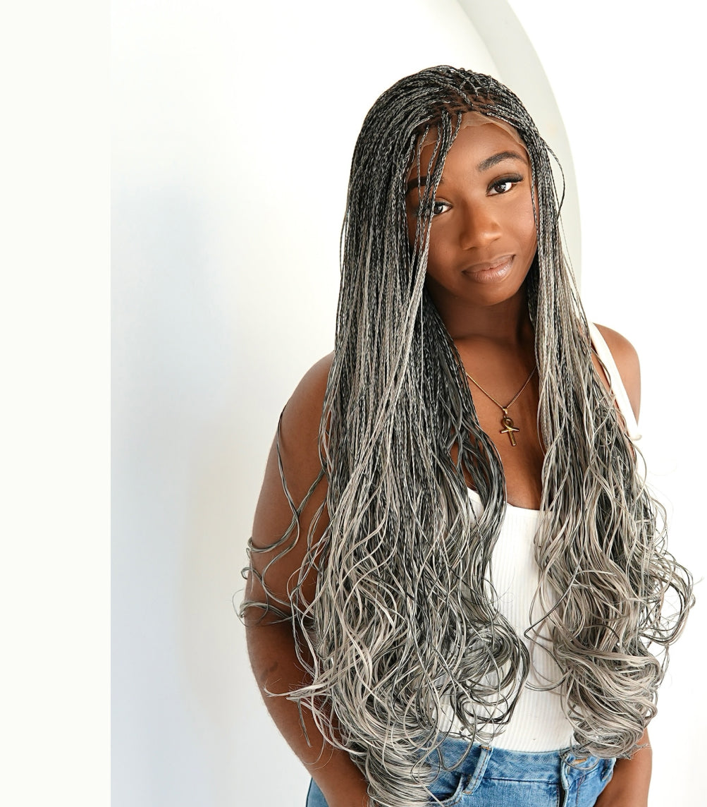 The ends of all Curly Braided Wigs should be curled and pinned in order to preserve curls over time.