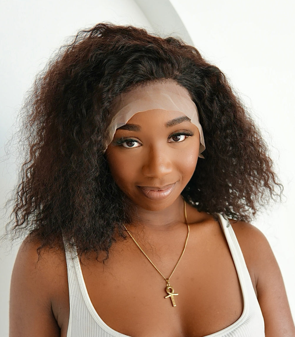 The Front Wig Cap - Curly is a machine-made wig cap crafted with 100% human hair, offering soft, defined curls for a full, natural look. This versatile wig can be dyed, curled, straightened, and washed, allowing for easy styling while maintaining its beautiful, bouncy texture.