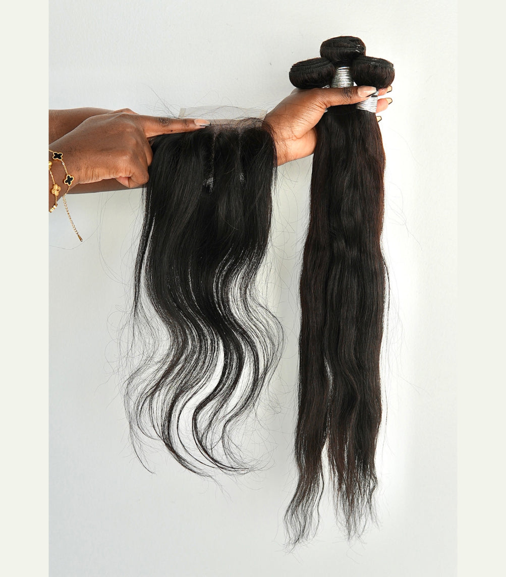 This package includes three premium hair bundles plus a closure, offering an unbeatable combination of price and quality. Perfect for a full, natural look, the European straight 100% human hair is versatile, easy to style, and designed to deliver a seamless, polished finish.
